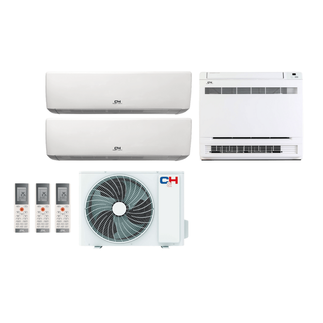 CHML-U28RK4-NG är en kraftfull utomhusenhet som levereras med en golvmodell och två väggmonterade inomhusdelar. Kombinationen gör systemet till en optimal lösning för bostäder och lokaler där flera rum behöver individuell temperaturkontroll. Multi-split-systemet skapar en jämn och behaglig inomhusmiljö samtidigt som du sparar energi och anpassar klimatet efter varje rums behov. En fjärrkontroll ingår per inomhusdel.
