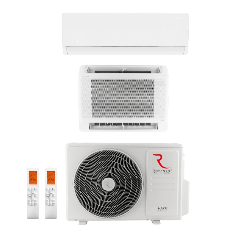 Rotenso Nordic High Performance Versu 6.5kW luftvärmepump en av varje är en exklusiv luftvärmepump framtagen för nordiskt klimat. Systemet kombineras med Versu Pure Multi (Vitt) samt Rotenso Aneru 26.