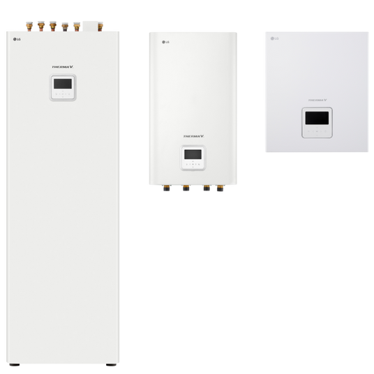 LG:s luft-vattenvärmepumpar kan kombineras med tre olika typer av inomhusdelar beroende på behov.