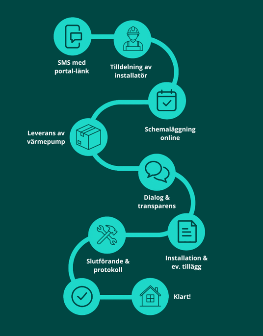 När du beställer en luftvärmepump med installation via Klimatime sker allt digitalt i vår installationsportal. Här är stegen: